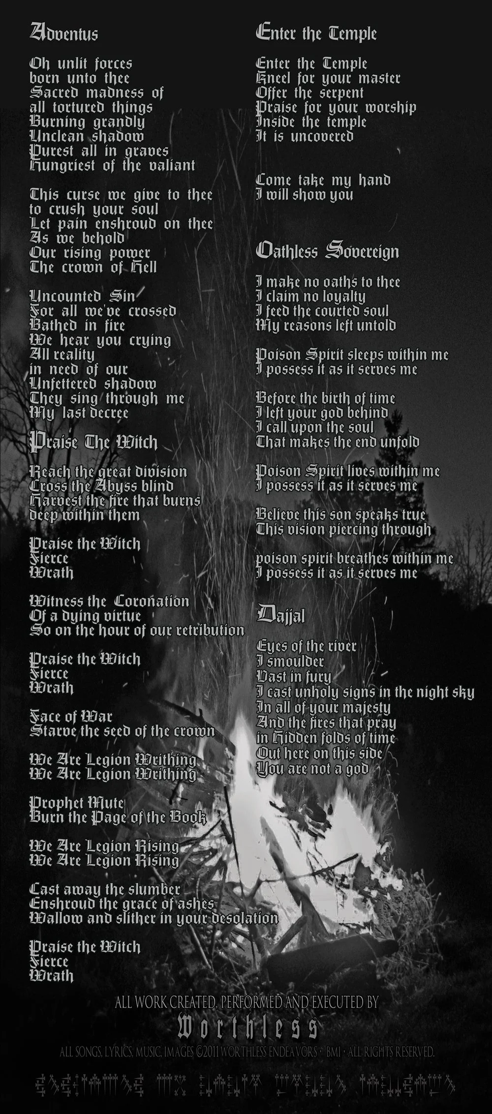 Oh unlit forces born unto thee